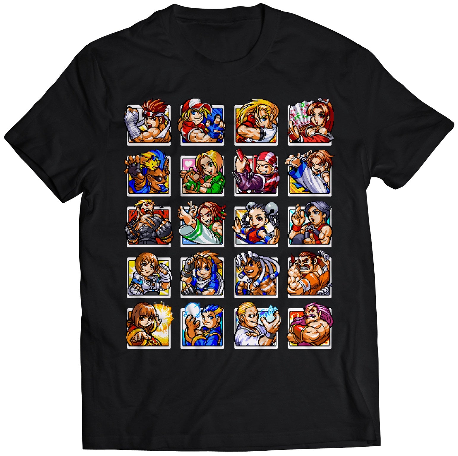Fatal Fury Card Fighters Clash T-shirt with Joe Higashi, Terry Bogard, Andy Bogard, Mai Shiranui, Duck King, Blue Mary, Billy Kane, Kim Kaphwan, Yamazaki, Bob Wilson
